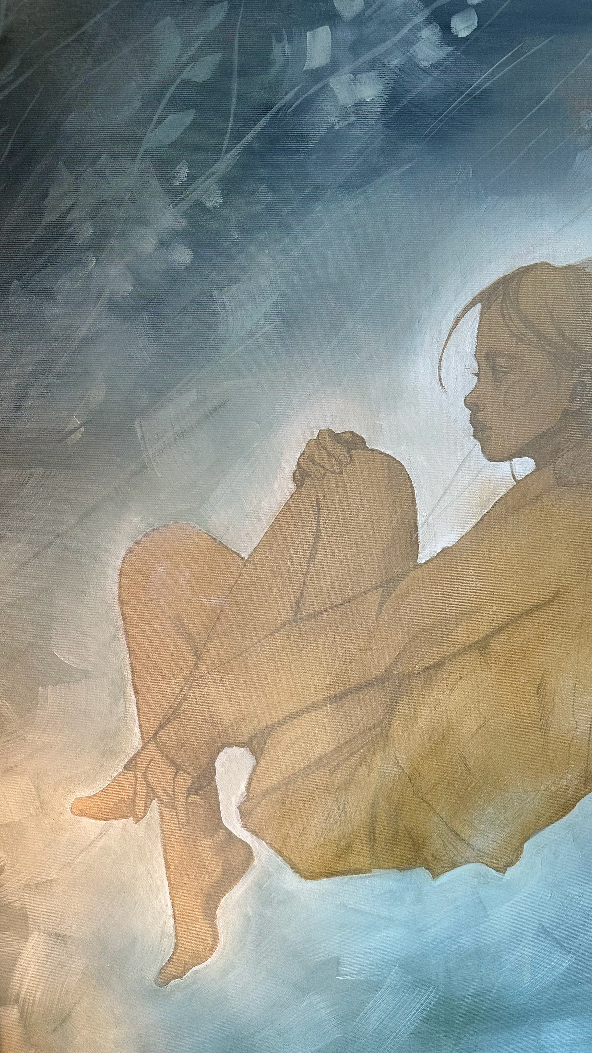 Arbeidet skapar kontrastar mellom dei ulike teksturane og eigenskapane dei to media gir. Kullteikninga og måleriet har kvar sine kvaliteter, som eg forsøker å løfte fram og la spele saman på lerretet. Prosjektet er ei utforsking av korleis teknikk og motiv kan møtast, utfordre kvarandre og finne balanse i eit felles uttrykk.