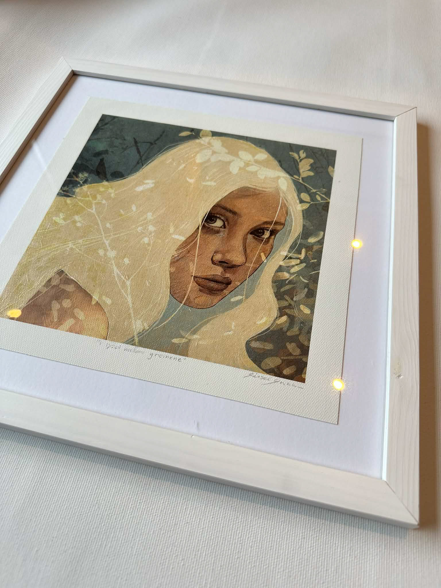 For deg som ønsker noe helt spesielt, finnes «Jenta i løvstorm» også som en eksklusiv premiumutgave i stort format. Hver eneste premiumprint er begrenset til kun fem eksemplarer, nummerert og signert for hånd, og leveres med ekthetsbevis. Premiumversjonen leveres på lerret med skyggeramme, alt ferdig montert og klart til å henge på veggen.