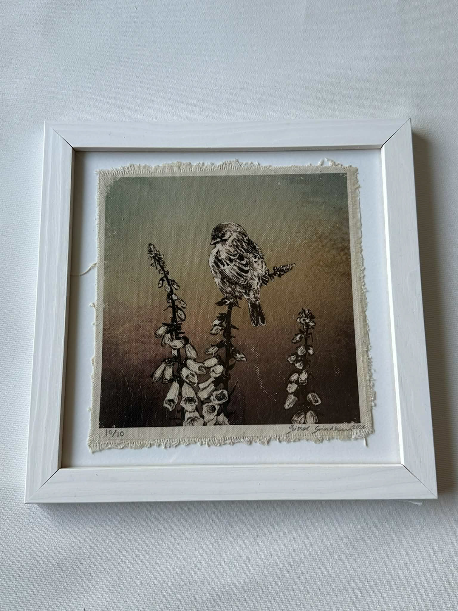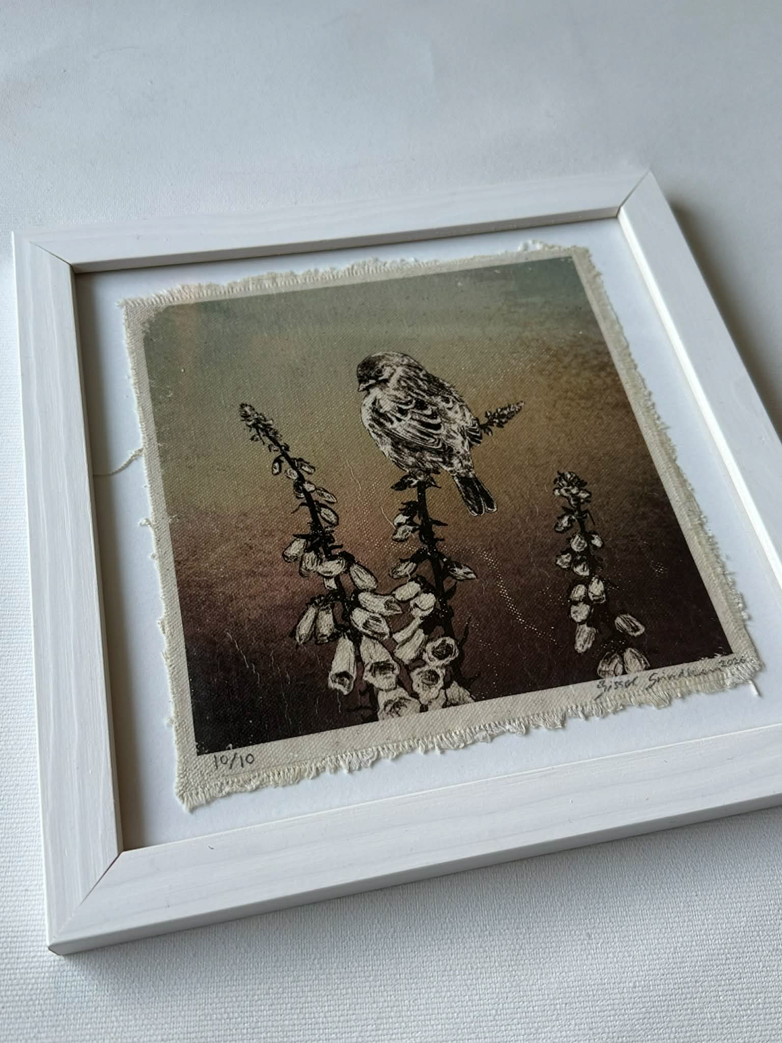 Digital teikning, handoverført til ubehandla bomullslerret (mixed media)
