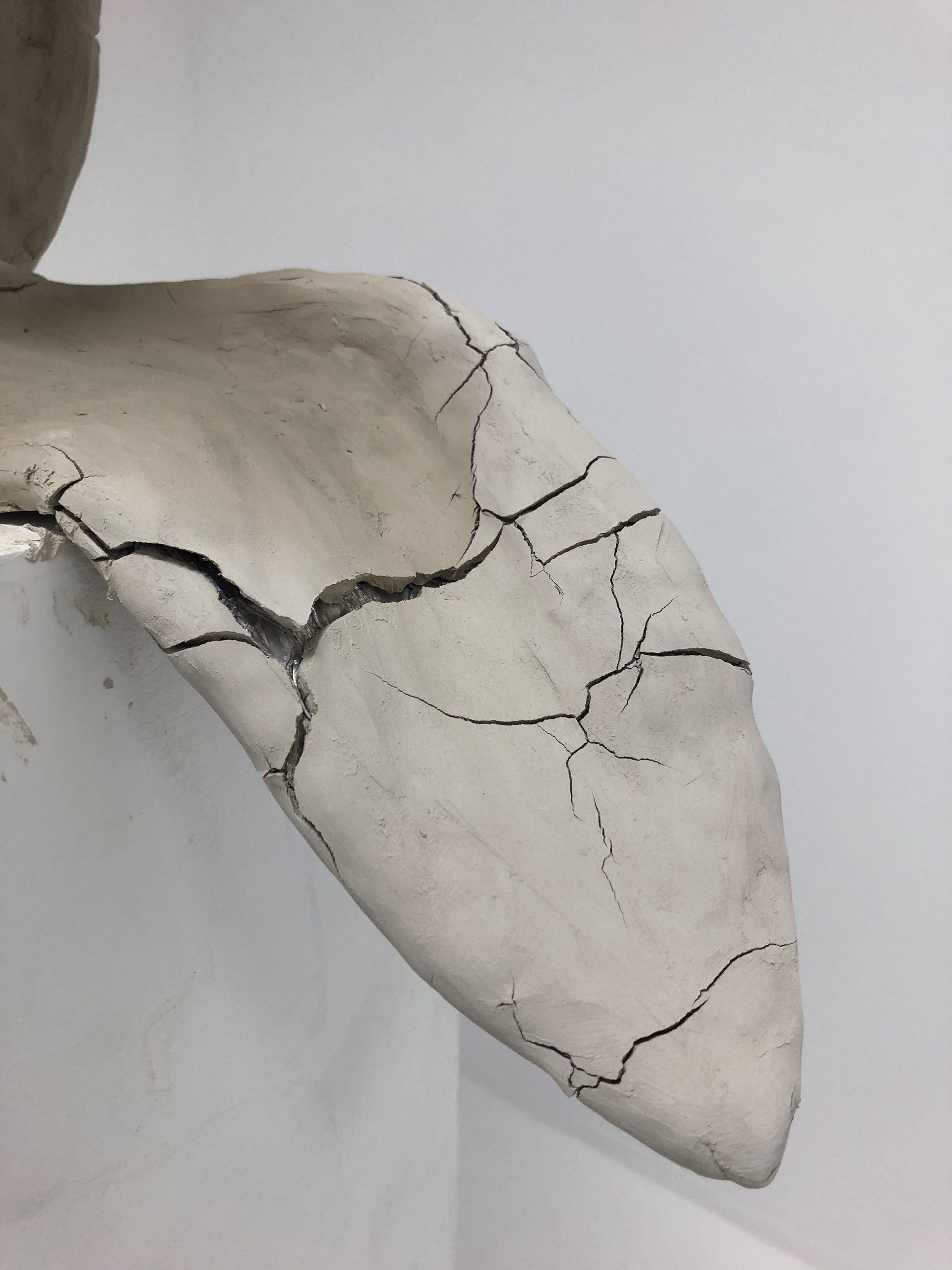 I installasjonen settes ideen og konseptet høyere en estetikken. Skulpturen er laget av netting og metalltråd hvor jeg har påført et tynt lag med leire som etter hvert kommer til å sprekke opp og tørke ut, som en del av installasjonen. Sprekkene og det ut-tørkede utrykket er bevist valgt for å vise den globale oppvarmninga og hvordan den fører til tørke i store deler av verden.