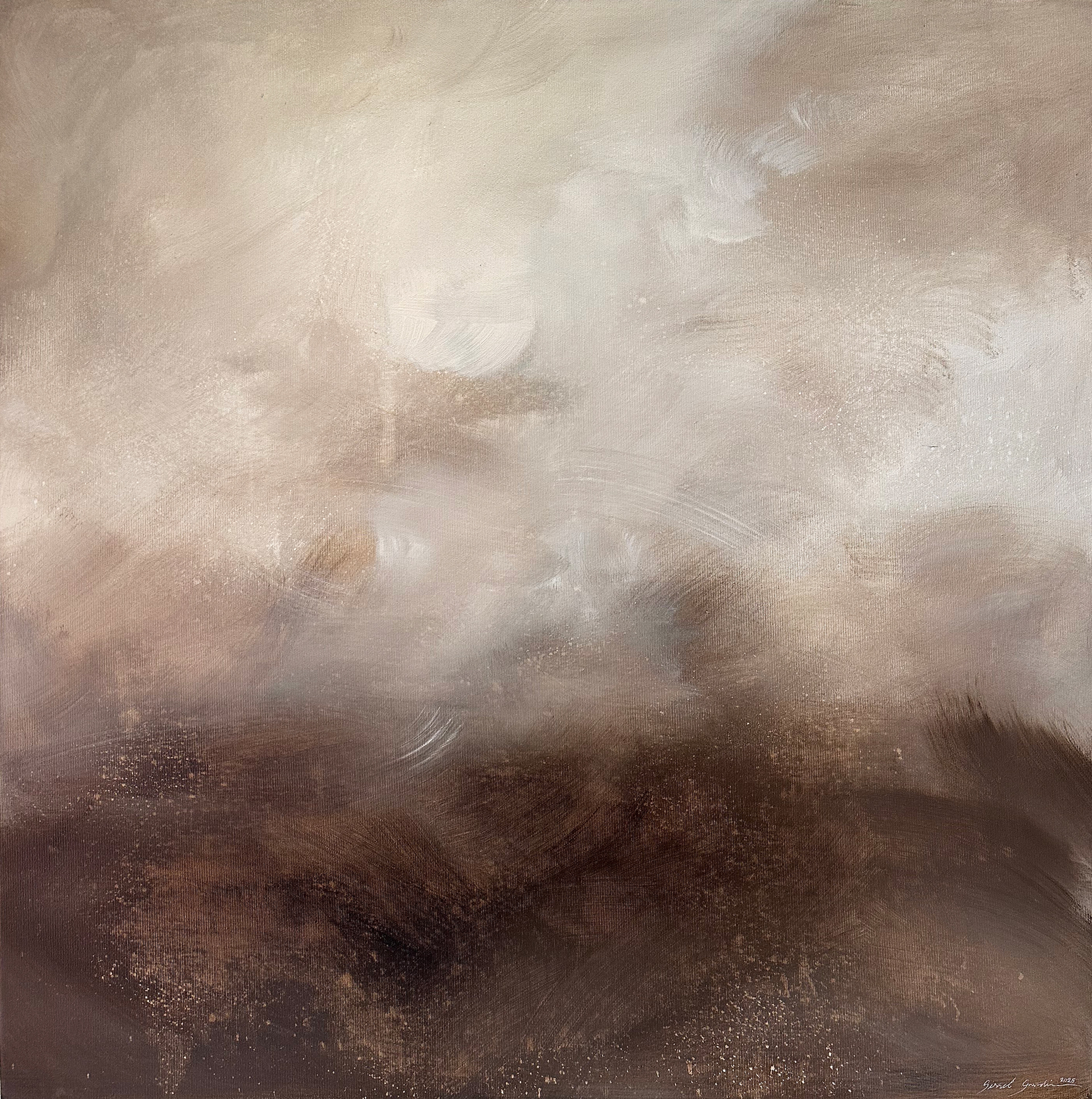 Dette måleriet fangar den stille overgangen inn i hausten, der mjukt lys, dempa tonar og skiftande teksturar skapar ei roleg stemning. Det speglar varmen i haustlyset som legg seg over eit landskap i endring.
